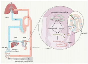 微生物群所产生的维生素B2代谢产物能在体内循环并控制MAIT细胞在胸腺中的发育,微生物配体或许还参与到了上皮内稳态过程中,MAIT细胞或能促进组织修复应对TCR的诱发反应,因此,MAIT细胞或许就能为哺乳动物机体的免疫系统提供一种直接的方法来感知微生物并提供粘膜屏障保护效应;这项研究中,研究人员首先回顾了MR1和MR1配体的独特功能,随后他们概述了细菌代谢产物在MAIT细胞个体发生和抗微生物功能中所扮演的关键角色,最后研究人员讨论了组织损伤后MAIT细胞对组织重塑的贡献,并阐明了MAIT细胞配体与其它微生物信号是如何参与其中的。