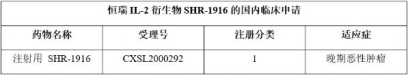 恒瑞首次申报临床的IL-2衍生物SHR-1916