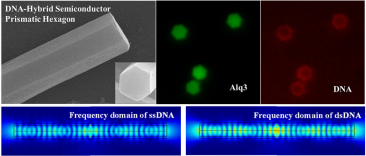 本研究中,六棱柱形混合一维晶体是由Alq3分子(三(8-羟基喹啉)铝,一种广泛用于OLED器件中的代表性有机半导体单分子)和单链DNA分子共组装形成。该团队通过光谱分析,确认了根据目标DNA分子的识别,混合晶体的发光强度和光波导效率存在差异,并定量算出了差异。