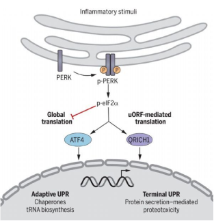 2021年1月4日讯/生物谷BIOON/---组织稳态需要多种细胞类型的协调活动来启动和消解炎症。内质网(ER)应激是炎症的标志,并在广泛的人类疾病中加剧组织病理。与炎症和细胞内在代谢需求相关的环境应激因素可引起ER应激、蛋白错误折叠和细胞死亡。为了对抗这些过程,应激反应途径,包括未折叠蛋白反应(UPR),有助于适应应激和组织重建。细胞感知ER应激,并通过由效应蛋白IRE1/ERN1(inositol-requiring enzyme 1)、活化转录因子6(ATF6)和蛋白激酶RNA样ER激酶(PERK, EIF2AK3)介导的三个协调途径启动UPR。总的来说,UPR效应途径微调了蛋白翻译的速度,并诱导促进ER功能的基因的转录上调,如那些编码伴侣蛋白和分泌复合物的基因。尽管UPR途径对ER应激的这些功能反应旨在恢复细胞的稳态,但长期的未消解的ER应激可以引起程序化细胞死亡。在这种情况下,决定ER应激结果的分子机制尚不完全清楚。