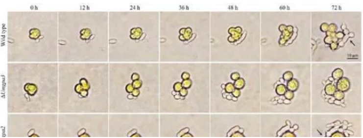 图2. 野生型和Gpa3敲除菌株与共生藻共同培养