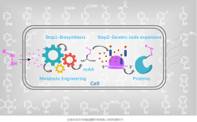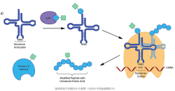 生命体中的蛋白质是由有限的20个天然氨基酸组合而成,这很大程度上限制了蛋白质一些化学和功能的应用范围。在过去几十年中, 科学家们为了在蛋白质中加入非天然氨基酸(noncanonical amino acids, ncAAs)做了各种尝试, 基因密码子扩展(GCE)技术便是其中之一,其能实现在生物体内任意目标蛋白的特定位点引入非天然氨基酸.这一技术是利用与宿主细胞生物正交的氨酰-tRNA合成酶/tRNA对(aminoacyl-tRNA. synthetase, aaRS)/tRNApairs), 利用终止密码子(UAG/UGA/UAA)编码非天然氨基酸。迄今为止,大约有200个非天然氨基酸插入到蛋白质中。