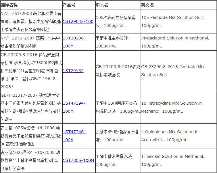 第四届全国农产品质量安全检测技能竞赛活动标准品解决方案