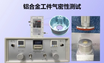 对于这种铝合金工件气密性测试,可以根据产品外形分别去做上下模具,并分别加硅胶密封弹性垫,当上下模具下压的时候,测试产品的所有透气的部位就可以被密封紧。然后产品通过负压法进行铝合金工件气密性检测,也就是我们所说的抽真空的方法进行气密性测试。真空气密性检测就会把产品内部的空气抽成真空状态,铝合金工件防水测试机设备内的传感器就会判断内部的真空状态是否有变化。然后这个铝合金工件的合格与否就可以通过铝合金工件防水测试机设备上的水槽内是否有气泡来判定。