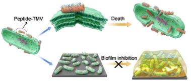 多肽功能化烟草花叶病毒抗革兰氏阴性菌及抑制生物膜形成示意图