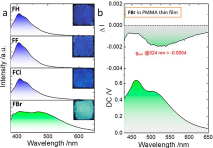 图3.不同物质的薄膜荧光光谱图(a),FBr的薄膜CPL光谱。