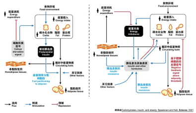 左为碳水化合物-胰岛素模型,右为能量平衡模型