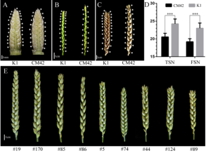 小麦(Triticum aestivum L.)作为最重要的粮食作物之一,是人们重要的能量摄入和蛋白质来源。我国是小麦生产和消费大国,培育高产小麦品种、不断提高小麦产量是保障我国粮食安全的重要措施之一。穗粒数是小麦产量三要素之一,与穗形态发育密切相关。小麦穗(spike)是由附着在穗轴两侧、交替互生的小穗(spikelet)构成。每个小穗包含数目不等的小花(floret),每个可育小花能够形成一个籽粒。因此,每穗小穗数和可育小花数决定了穗粒数,进而显著影响籽粒产量。揭示小麦小穗数形成的遗传基础,对于培育高产小麦品种具有重要理论及实践意义。