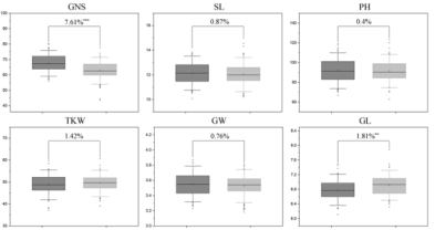 图3.QTsn/Fsn.cib-3D对产量相关性状的影响