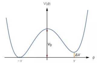 SGWB和CMB同样是随机背景,从对CMB观测的历史可以发现,随着探测手段的进步,从测量能量谱到观测各向异性并提高角分辨率是发展趋势,对SGWB各向异性的研究得到越来越多的关注。近日,中国科学院理论物理研究所研究员蔡荣根、郭宗宽,以及理论所博士后(已毕业)刘京,探究宇宙畴壁塌缩产生的SGWB,并提出一种新的机制产生SGWB的强各向异性,进而观测这一强各向异性的SGWB可以限制暴胀的能标。畴壁是一种片状的拓扑缺陷,产生于具有离散对称性自发破缺的粒子物理模型中。畴壁的运动和塌缩会产生可观的引力波。科研人员考虑了一类暴胀时期的轻标量场。这类轻标量场可以是希格斯场、轴子场等,其势函数具有多个非简并真空(图1),标量场有效质量小于暴胀时期的哈勃参量。暴胀时期的真空量子扰动导致标量场跨越势垒。在暴胀结束后,哈勃参量逐渐减小到标量场有效质量以下,标量场稳定在不同的真空附近,畴壁形成。虽然畴壁的能量密度所占比例随时间增大,由于真空非简并,畴壁将在其能量主导宇宙之前塌缩,引力波也主要产生于畴壁塌缩前后。由于标量场在暴胀时期是轻场,其大尺度扰动在出视界后保持不变,造成畴壁能量密度的大尺度扰动和SGWB的各向异性。