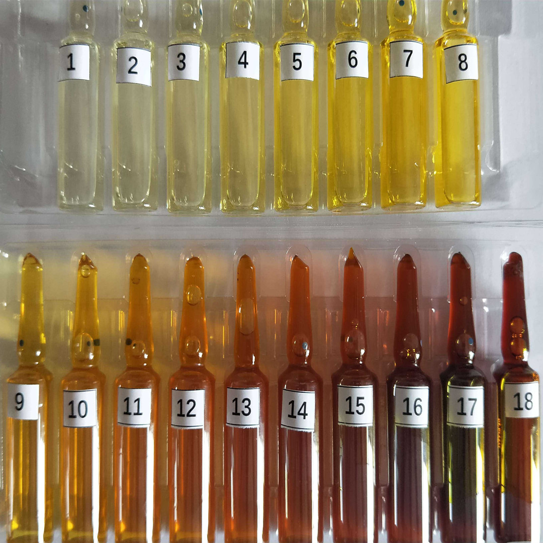 加德纳(Gardner color scale)颜色标准:测定淡黄至红色的油品和化学品。